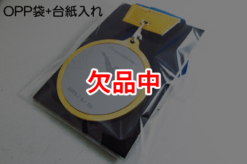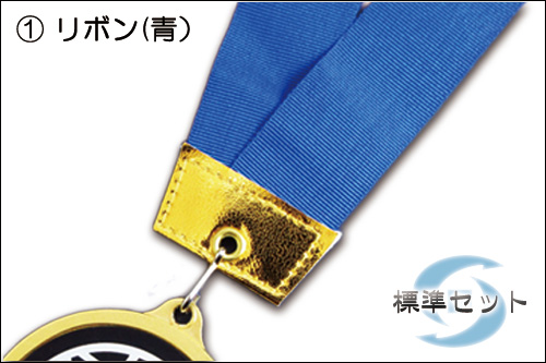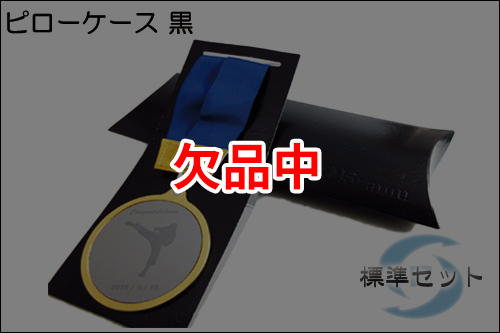 メダル本体・リボン(青)・オリジナルスタンド(台紙)・オリジナルピローケース(黒)
